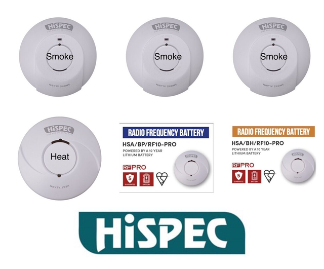 K) HiSPEC RF Pro 10 Year Longlife Battery Radio-Interlink 3 Smoke & 1 Heat Alarm Kit (Supply & Fit)